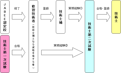技術士になるためには以下の図に示すようなステップを踏む必要があります。